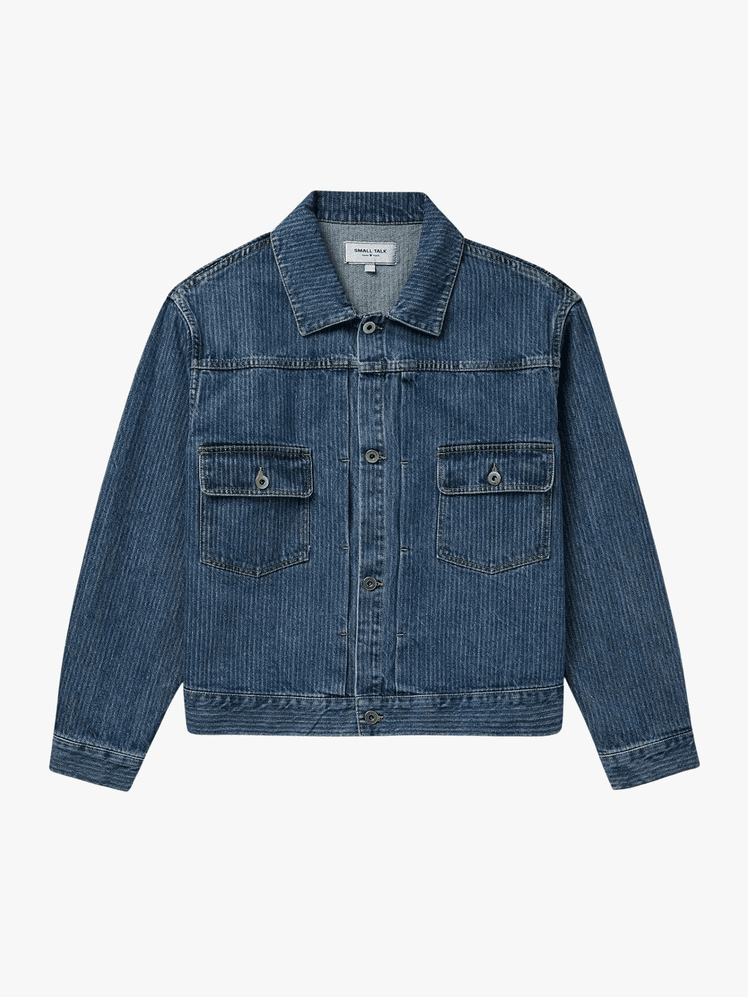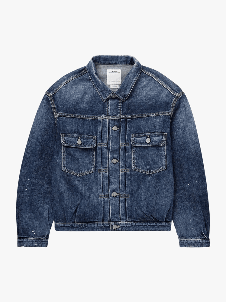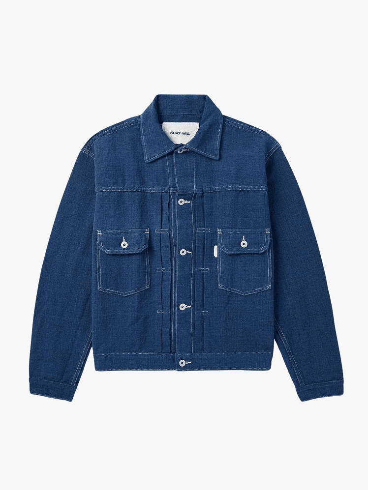 That would be the middle child of the denim jacket family: the comparatively unloved Type II. Unveiled in 1953, just nine years before its younger sibling, the Type II features a vertical pleated front, waist adjuster tabs, and, crucially, two square flap pockets that sit a little lower on the chest. It’s boxier than the slim-and-trim Type III, but just as cropped.