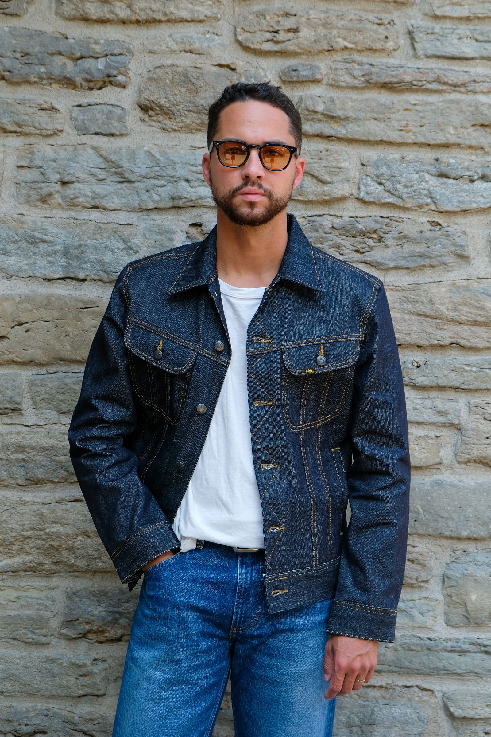 So what makes it the one, at least for me? The legend starts in 1935, when Henry David Lee dropped the 101J, the blueprint for today’s jean jacket. It was an upgrade to Lee’s first attempt, this time with vertical pleats and reinforced stitching, plus a flannel lining. Purpose-built. Fast forward to a post-World War II era, as denim breaks out in a big way, going from rail yards and ranches to the big screen. Lee, seeing the way the winds were blowing, launched the 101J Rider Jacket in 1948: streamlined and shorter, with angled chest pockets and a sharper shape. Still made for cowboys—but suddenly Hollywood icons were wearing it, too.
