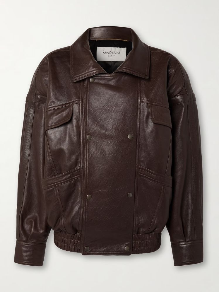 Saint Laurent Oversized double-breasted paneled leather jacket