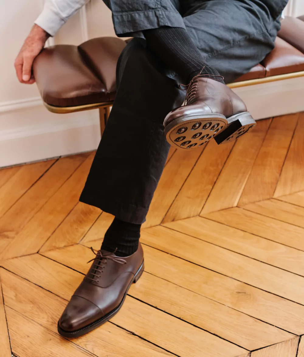It is a natural transformation for anyone who understands the French mentality. Nearly all ‘dress shoe’ wearers in France add rubber sole guards and toe taps to their leather shoes anyway. So, why not bypass that altogether?!