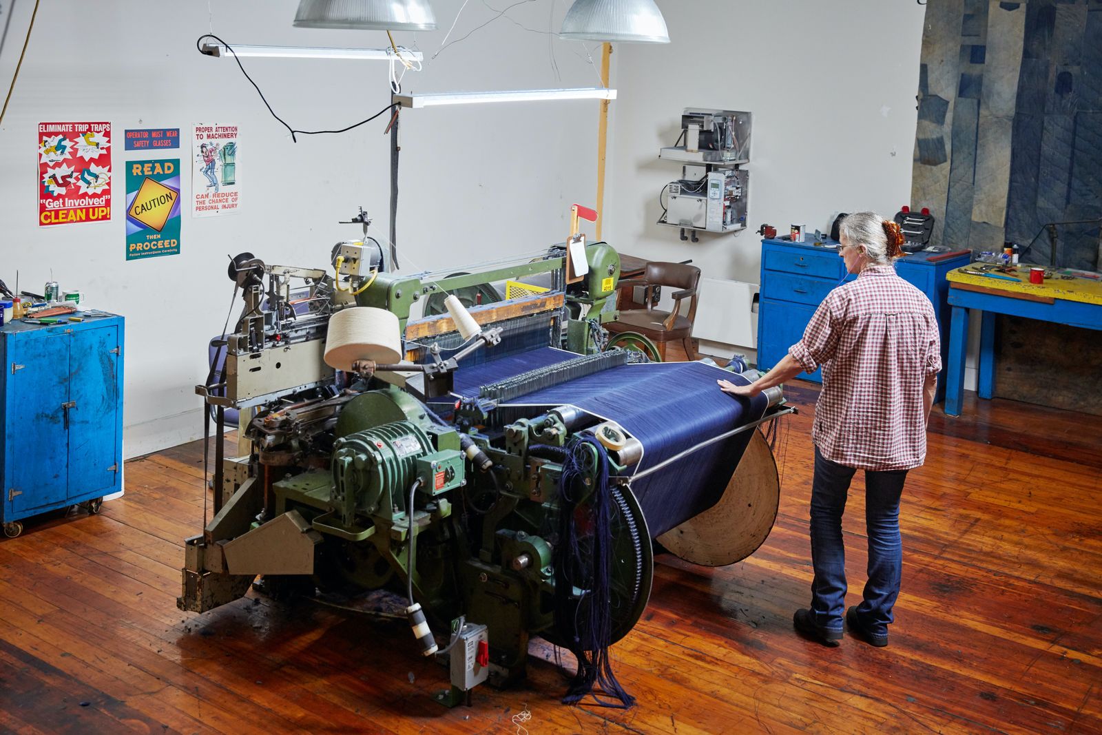 Selvedge denim is still produced on traditional shuttle looms at Proximity Manufacturing Company in Greensboro, North Carolina.