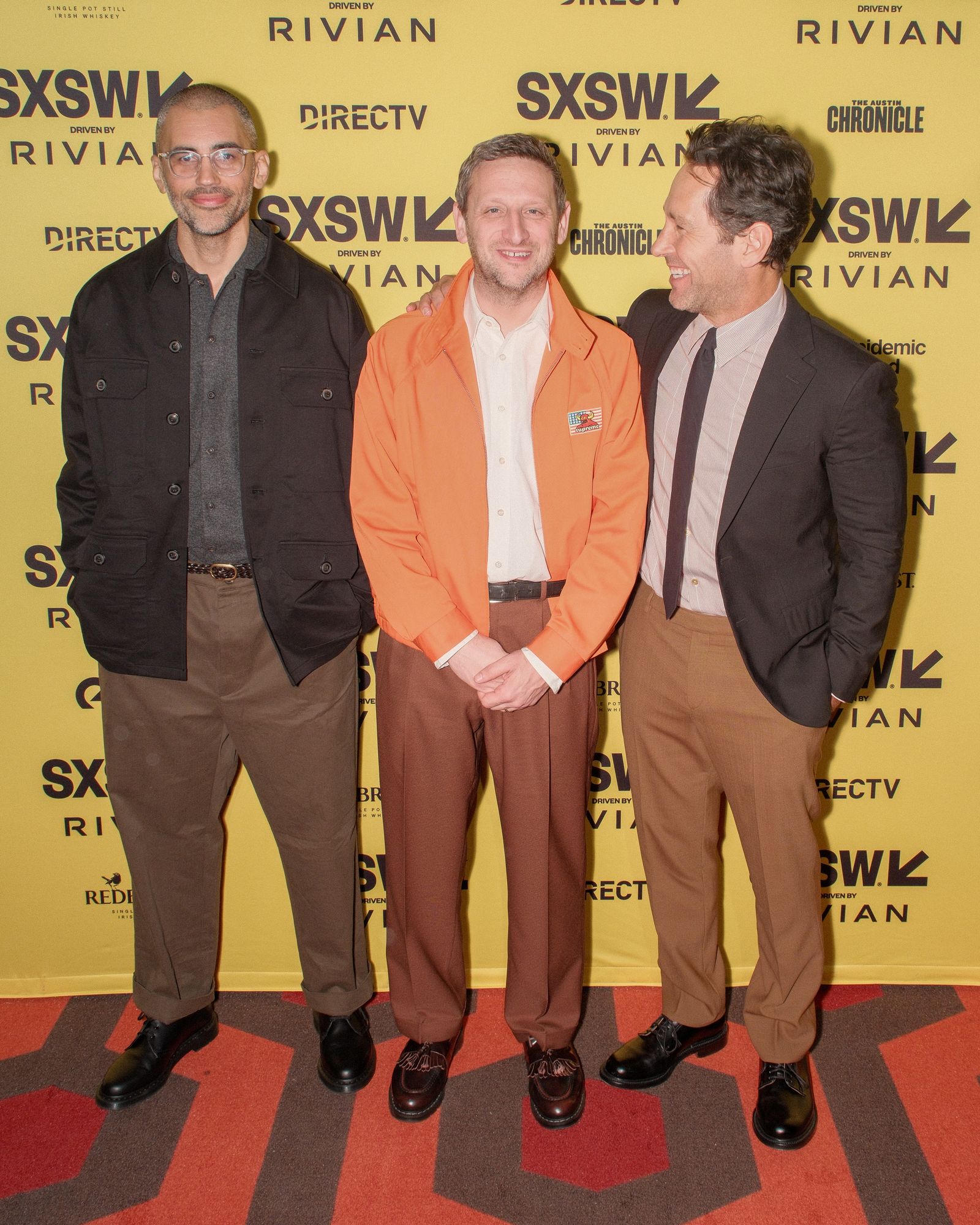 Pantone crowned a rich, coffee-chocolate brown as its Color of the Year for 2025, and the shade was all over menswear. Its high point came at the SXSW premiere of Friendship, where stylish brown pants achieved a rare trifecta. Co-stars Tim Robinson and Paul Rudd showed up alongside writer-director Andrew DeYoung, each offering a distinct take. Robinson went rust-hued and slouchy but restrained; Rudd opted for a cleaner, slightly low-rise cut in a smooth butterscotch hue; DeYoung took the roomiest route, wearing greige flat-front chinos with generous ease—three excellent pairs of pants, three different shades of brown. (A runner-up in Best Brown Pants must go to Colman Domingo at the Emmy’s, though.)