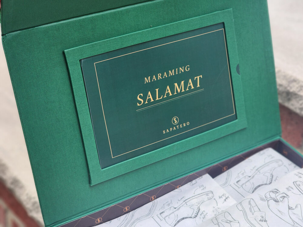 Sapatero impressed me immediately with their presentation. The box is sturdy and lined with a quilted pattern, featuring the brand’s clever hammer logo — a subtle nod to the craft of shoemaking while tying it into their name as the hammers created an ‘S’. Even the wrapping paper is printed with shoe design sketches, something I’ll always appreciate as a designer myself. A shoe care guide card is also included, which is a thoughtful touch for clients.