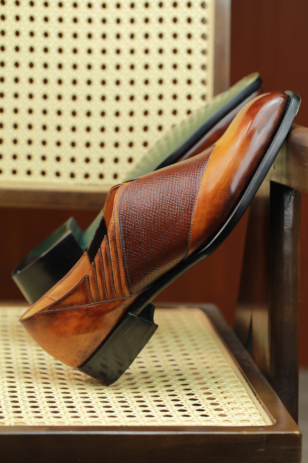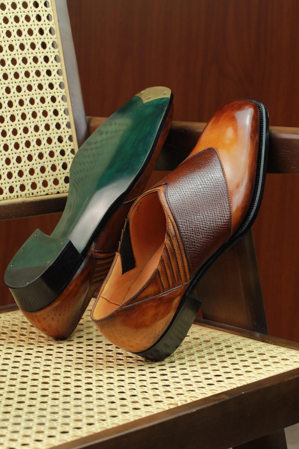 Shoe design is not simply the last and the pattern. It is the colors that one chooses to harmonize. The contrast here between a burnished tan and the mid-brown hatch grain harmonizes very well. It creates a fluidity that captures the essence of the model. If, for say, it were black and red, two colors I love together, I do not think that it would offer the same harmonizing feeling.