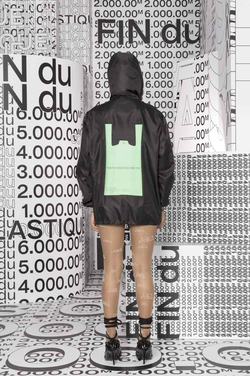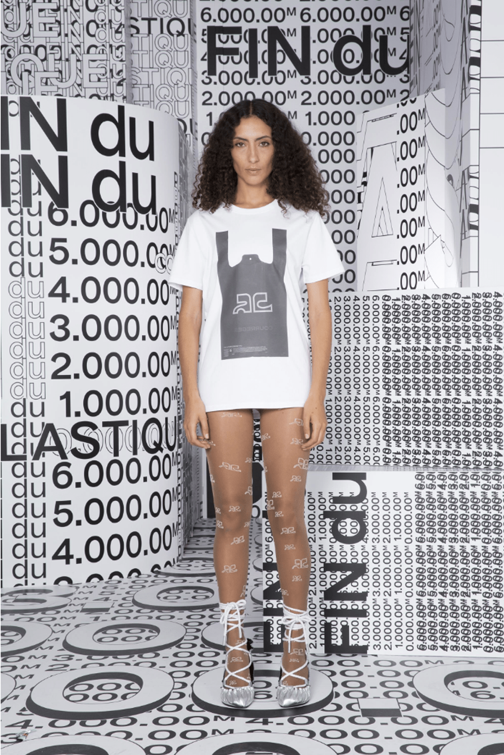 How does a brand built on futuristic fashion made of plastic shift in an era of eco-conscious consumers? Make a capsule collection highlighting the change! Yolanda Zobel, artistic director for Courregès, has just dropped a capsule that is comprised of the company’s vinyl stock, in an attempt to reduce the amount of the material it has on hand. The collection is called Fin de Plastique, and every piece features a numbered stamp, in decreasing order, measuring the reduction of the stockpile.