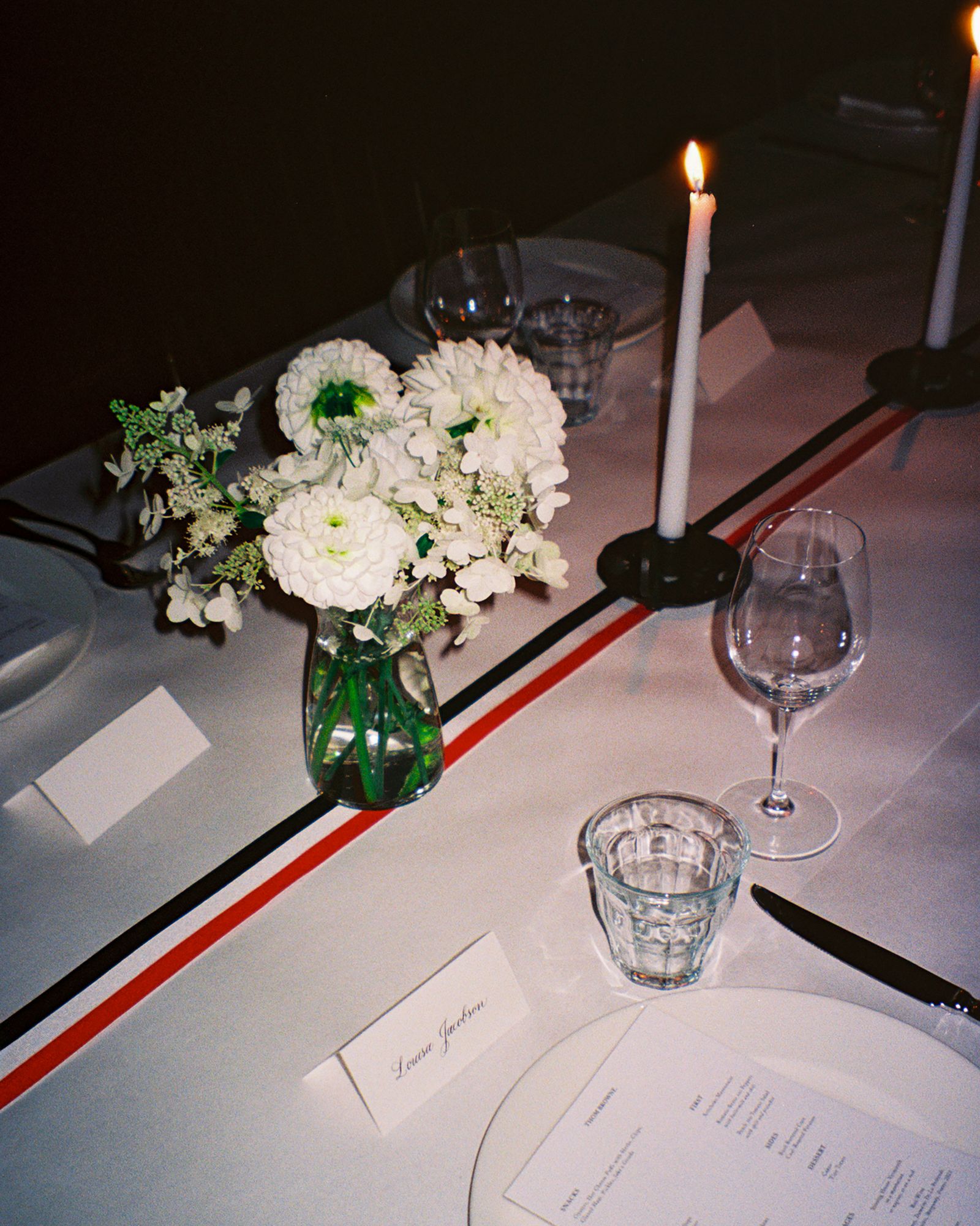 Having been to a couple of them now, I think I’ve got a good handle on the Thom Browne dinner party formula. You need a good crowd of creative people whom Browne admires (the designer told me he’d binged The Gilded Age a couple weeks prior). You need a historic room that encourages dressing up, a guiding principle of Browne’s life. “Everybody knows me for my mid-century aesthetic in regards to my stores and all, but my personal aesthetic in regards to how I live is very classic Georgian,” he said. “Some type of formality is important to me.” You need cold champagne. And of course, you need everybody in full Thom Browne.