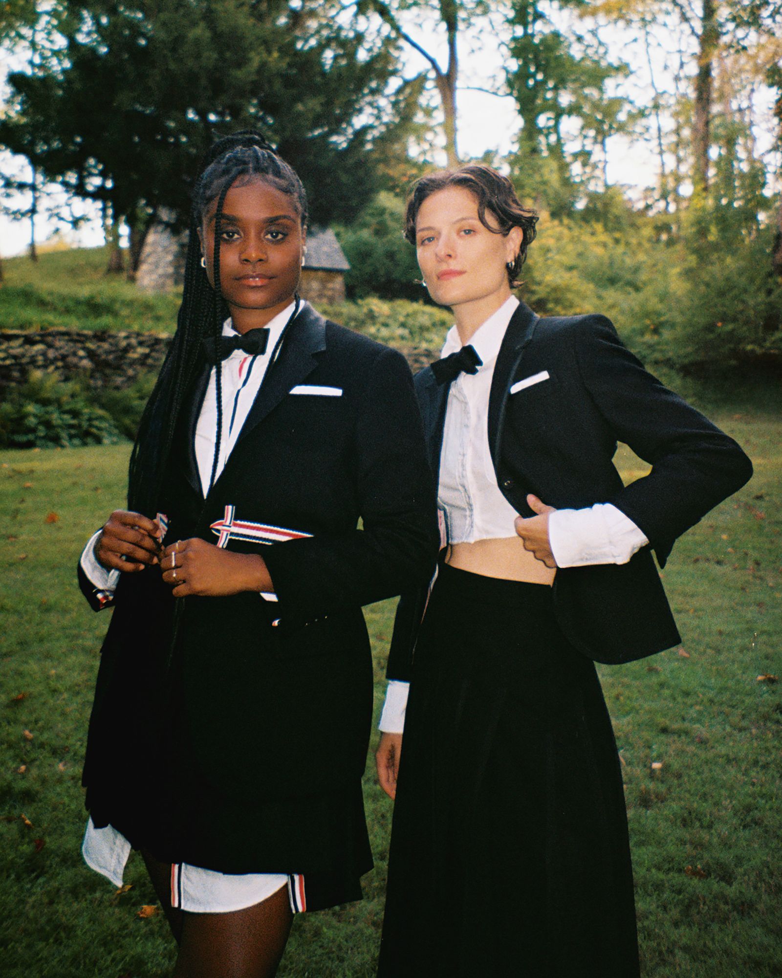 Menelik Puryear / Courtesy of Thom BrowneBrowne is a master of showcasing his work in novel ways. There are his lavish theatrical runway shows, of course, but the designer has also built a captivating aesthetic universe far outside his big top productions. It helps that practically anytime a group of people hang out together while decked out in his clothes, it reads as a moment; the simple act of wearing Thom Browne casts you in his surreal story. Take Doechii’s iconic performance at this year’s Grammys, which was reminiscent of one of Browne’s personal favorite examples of genre-busting drama: His famous Pitti Uomo performance art piece in 2009, which he calls “one of the most important things I think I’ve done.”