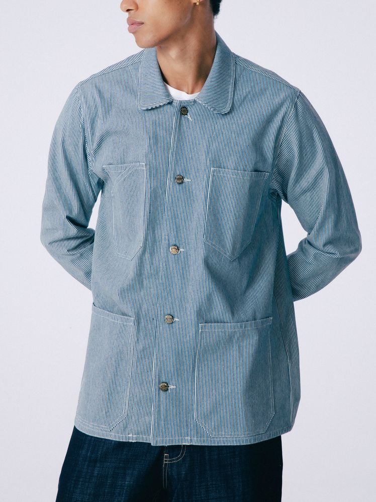 Before workwear became a craze, chore coats were worn by skilled laborers in 19th-century France. They were made of sturdy, thick materials like heavy moleskin, cotton twill, or thick wool and featured an array of pockets at the chest and hips for tools. They were also cut generously to provide room for movement as well as to fit over thick sweaters. And it’s precisely the chore coat’s practicality that would eventually land it in the middle of menswear circles and even the runway.