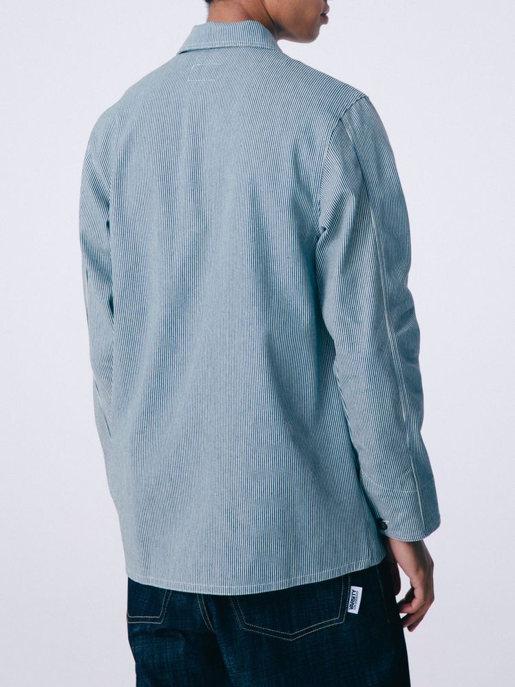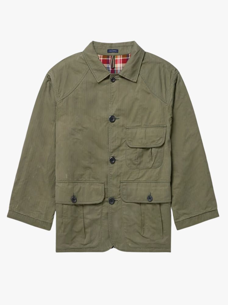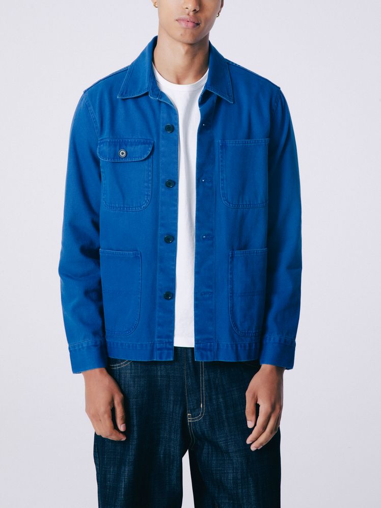 Today, those basic chore coat characteristics remain true. Save for the capital-F Fashion iterations, high-quality chore coats should always be made with a heavy-duty fabric, ideally without the use of elastane. Chore coats should still be cut roomy enough for layering and movement. Though it’s not a requirement, more durable chore coats will use triple-needle stitching which helps produce stronger seams. Pockets at the hips are essential to chore coats, though you’ll often see pockets at the chest as well as inside the coat. And, depending on the weather, you can opt for chore coats with a warm lining for the cooler months or ones made with lightweight materials like hemp or linen for the summer.