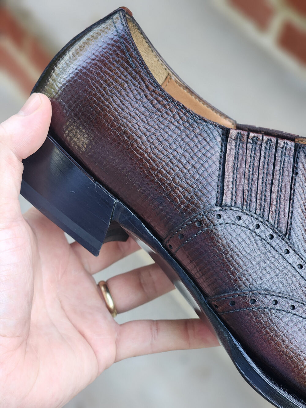 The stiletto style fiddleback that CNES originally added to their hand welted shoes was not a favorite, if I am going to be completely honest. It was unique, that’s for sure. But not to my personal liking. They must have felt the same as they upgraded that fiddleback to your standard look, and I feel that it suits the shoes much better. It is still very defined but more harmonious with the shape of the sole now, IMHO. I think that they were smart to update that.