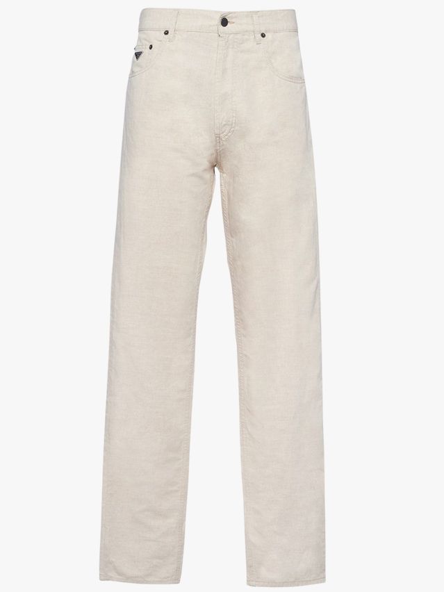If you favor your white denims with a dosage of Italian zhuzh, Prada’s beige chambray five-pockets are the design for you. Completed with the brand name’s trademark steel triangular plaque on the ticket pocket– notably consumptive, you?– these denims include a low-rise and a washed-in rinse impact, so you will not worry if they mistakenly wind up in a somewhat too-hot clean. The spacious leg is additionally evocative Levi’s timeless 501 white denims, producing a rewarding, full-circle minute … in this edit at the very least.